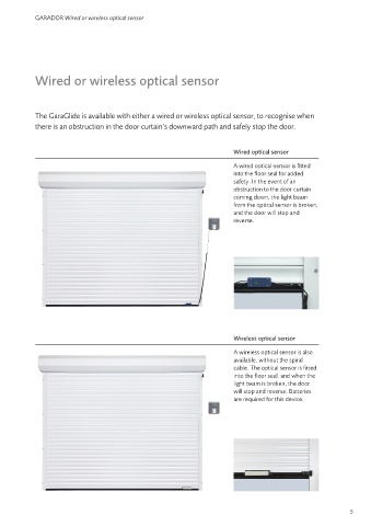 The GaraGlide is available with either a wired or wireless optical sensor, to recognise when