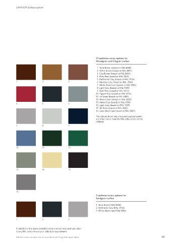 Printed colour samples are as accurate as printing techniques allow. 19